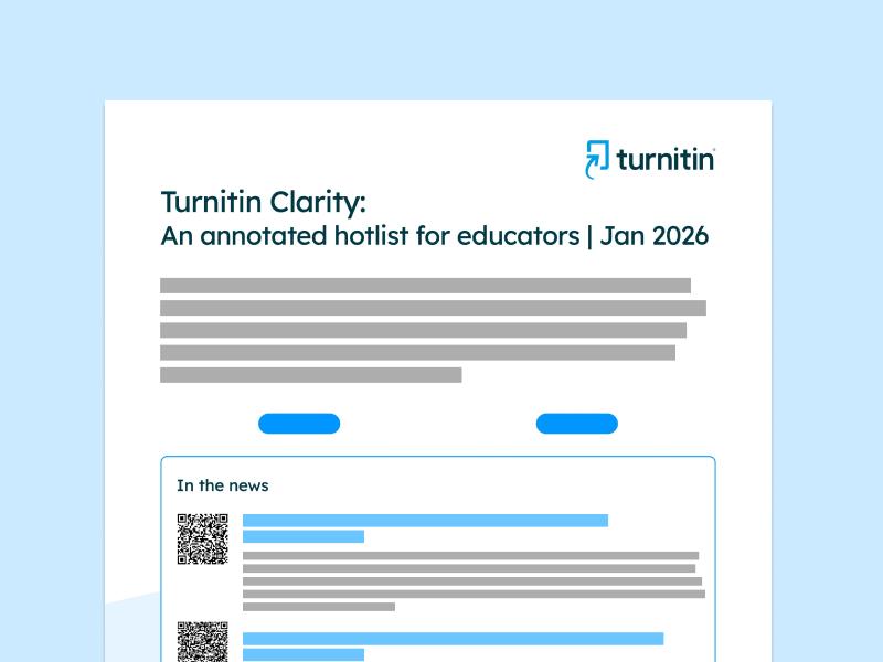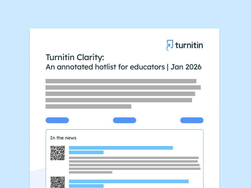 The fourth and latest iteration of our annotated hotlists focuses on Turnitin Clarity; the goal is to present resources to provide context for using Turnitin Clarity to support the writing process, promote responsible AI use, and reinforce learning integrity through instruction, reflection, and ongoing professional dialogue.