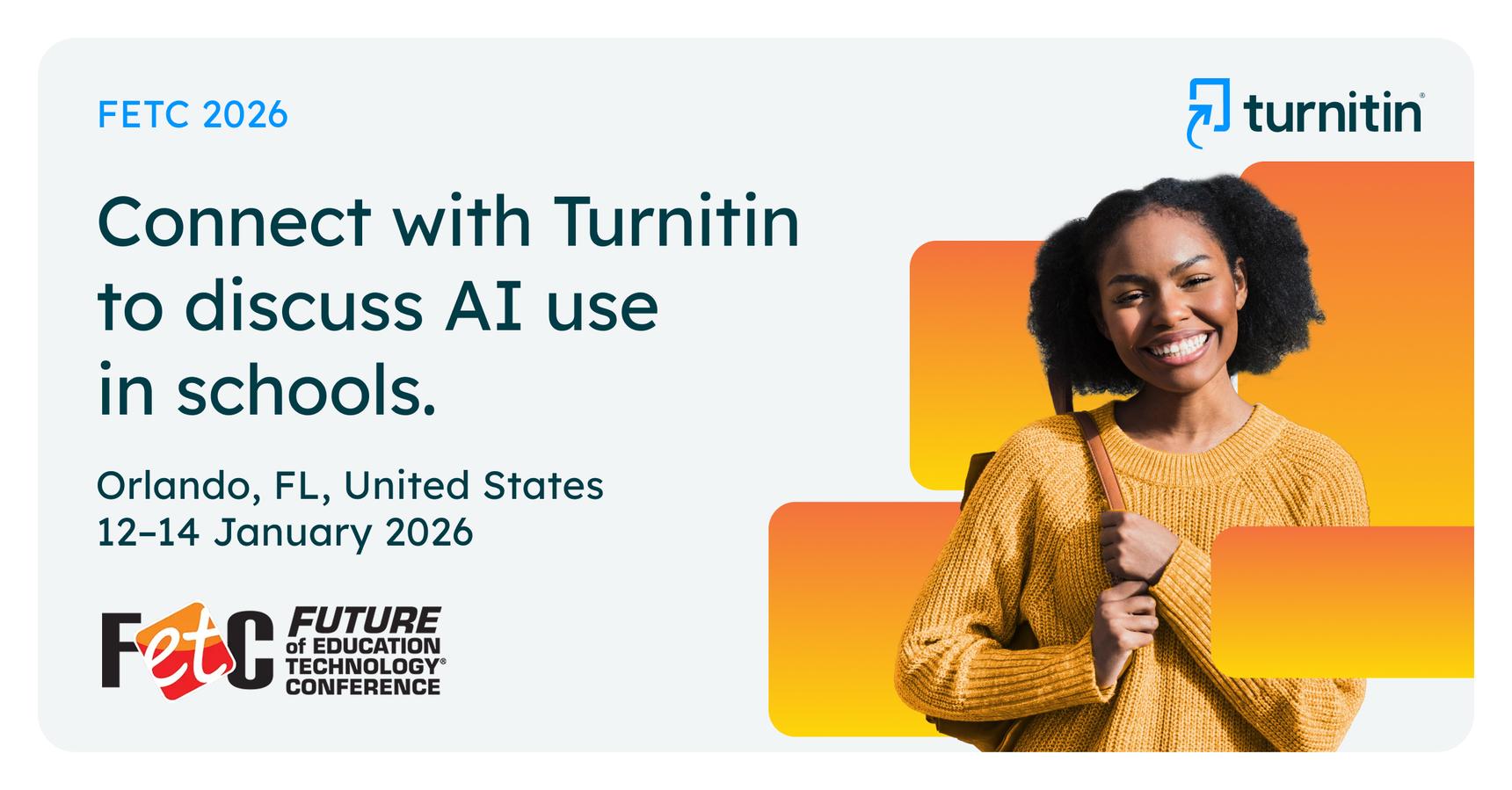 Turnitin is excited to be exhibiting at FETC (Booth #2149) next week! Our team would love to connect and chat about how we can help your school navigate ethical AI use.