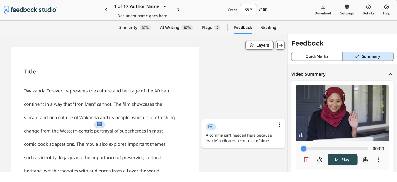 Audio and Video Comments coming soon to Turnitin Feedback Studio