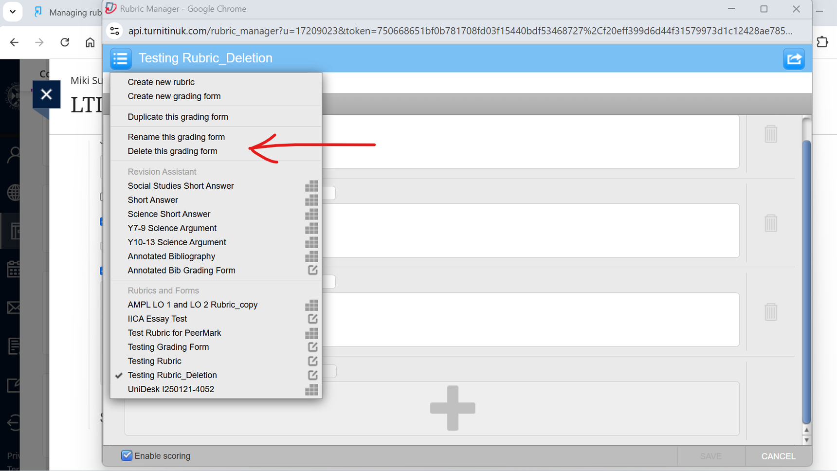 3. Attaching a new Rubric seems work better to ensure the old one is detached, and the Delete is visible.