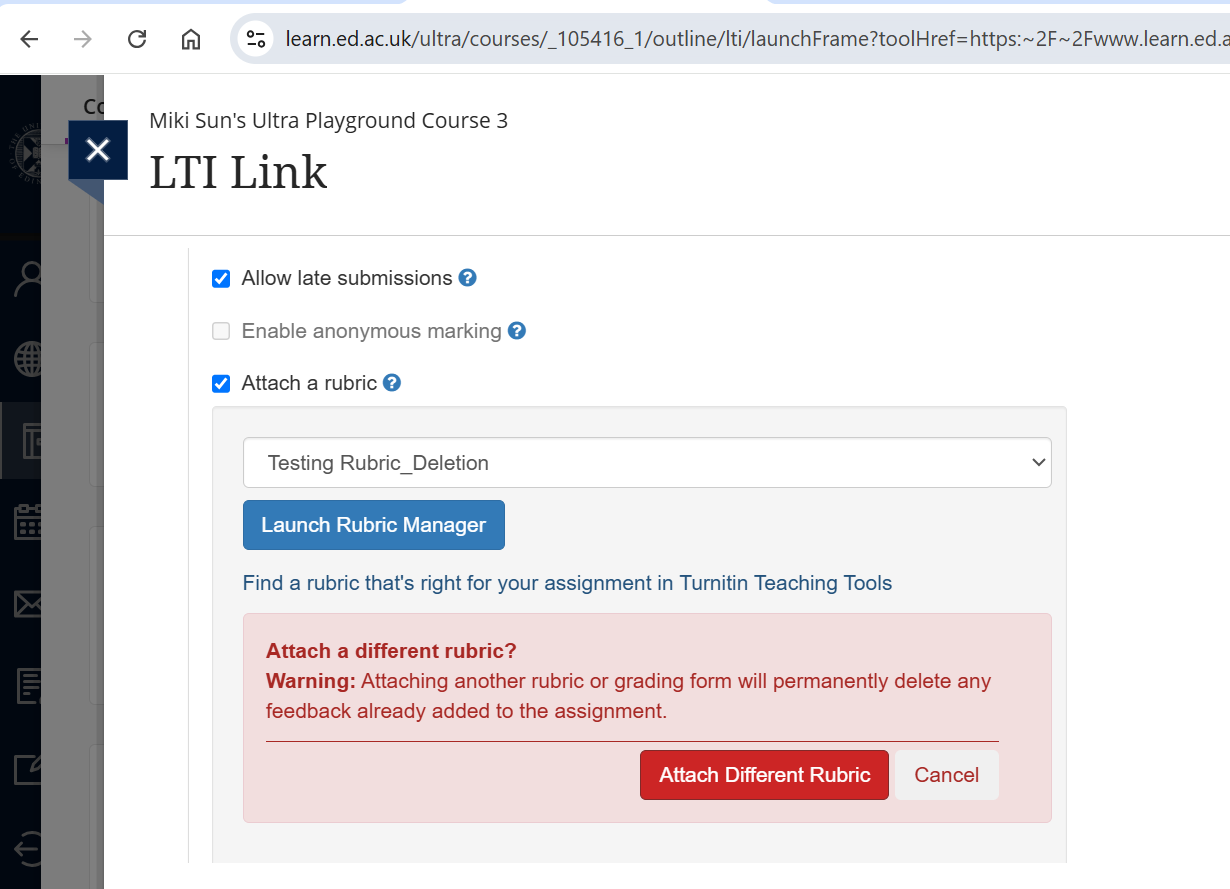 2. Un-ticking the Assignment Settings/Optional Settings/Attach a rubric box does not seem to clear the rubric completely. After this step, Delete for this rubric is still greyed in Rubric Manager.