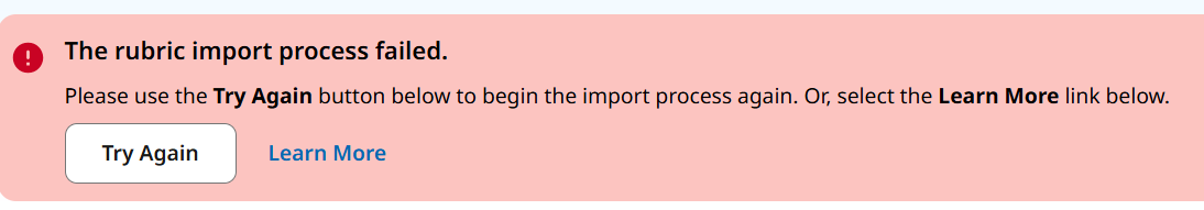 I keep getting the above message when I try to import the rubrics. I have tried this both in Google CHrome and Microsoft Edge. I get the same message.